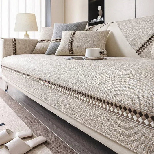 Keten Lüks Kaymaz Tabanlı Koltuk Örtüsü Seti